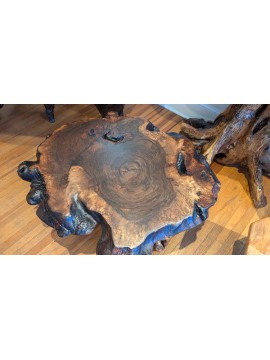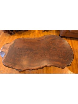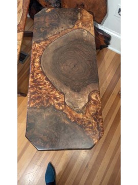 Solid Claro Walnut Burl coffee table with black walnut legs