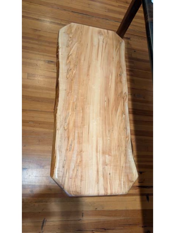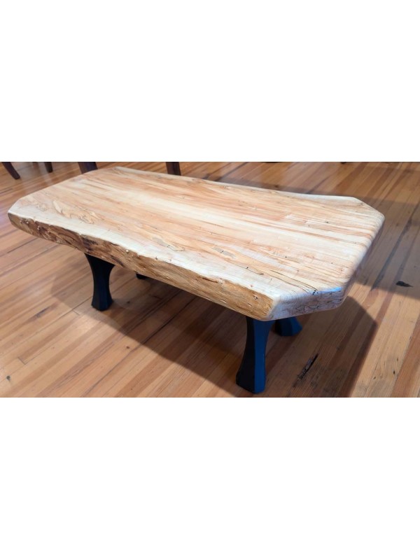 Ambrosia Maple coffee table with modern metal legs.