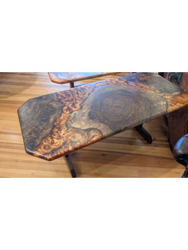 Claro Walnut Burl coffee table wiht copper epoxy. Custom black walnut base. Perfect size 45 by 20 by 19 inches tall